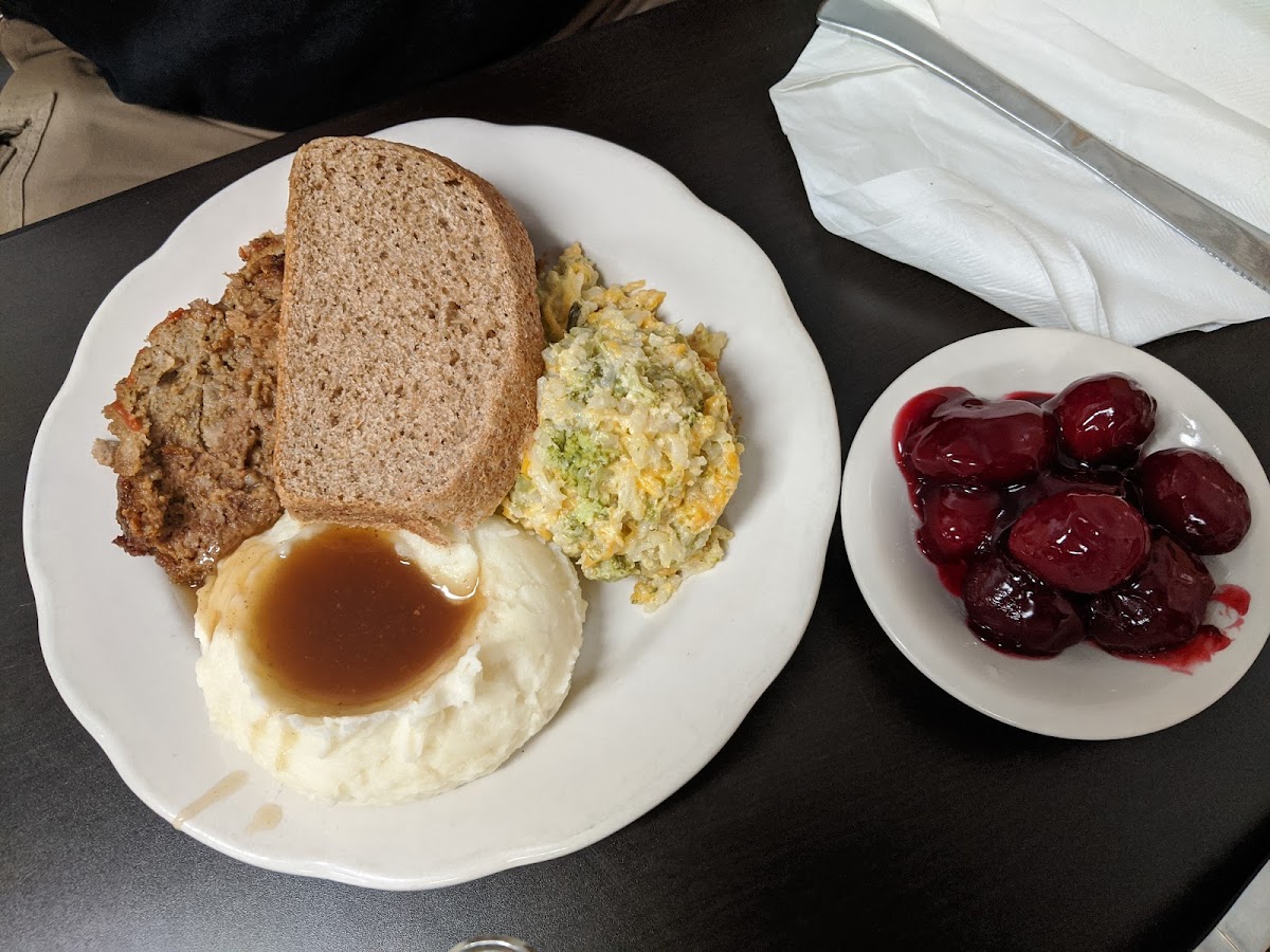 We went here looking for homemade cookies and ended up having lunch. The food I'd AMAZING!! I recommend this place and will be going back to eat next time I'm in town. There were 4 of us and we shared plates. The first plate was pork roast with gravy, mashed potatoes, carrots, and beats. The second plate was meatloaf, carrots, broccoli casserole, and sweet potato casserole. My mom and I also had the salad bar, which had so much stuff and best of all homemade croutons that were soft and seasoned perfectly. The portions are large and I can't say enough about how good the food was and fresh! Wish they were open later on a Saturday so I could take my Dad. Oh and lots of freshly baked deserts.